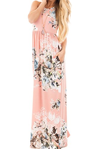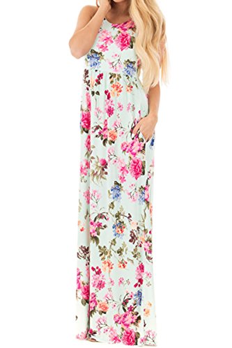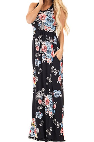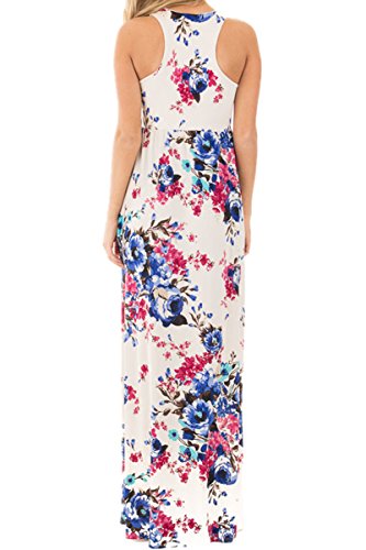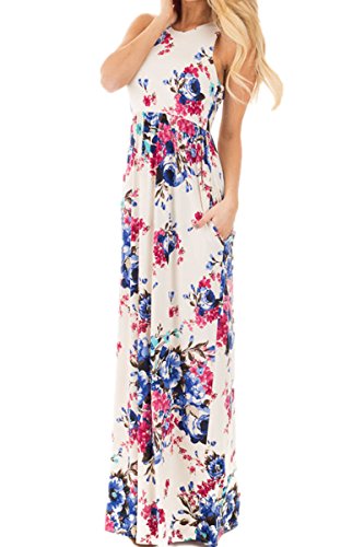 Huiyuzhi Womens Sleeveless Racerback Floral Print Casual Long Maxi Dresses,White,XLarge