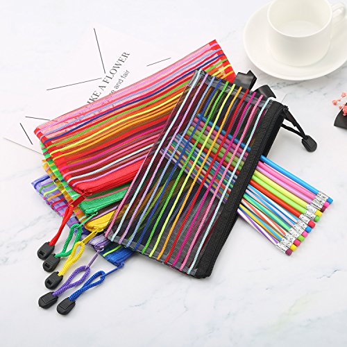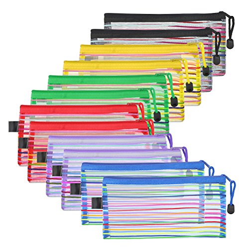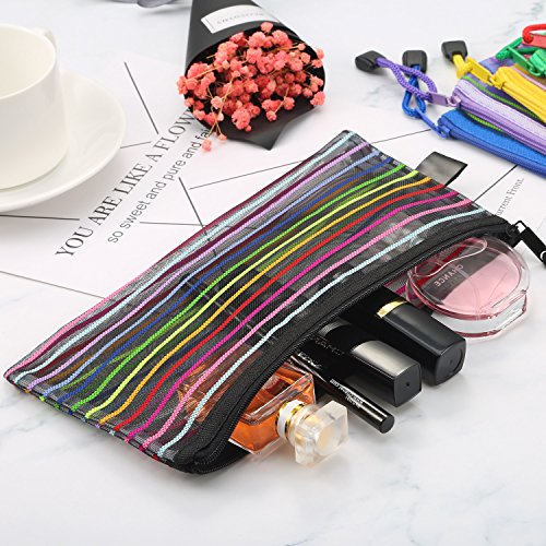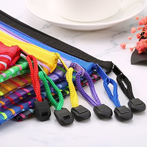 - Quantity: 12 pieces of file bags in total, 2 pieces each color; The mesh cosmetic bags feature smooth surfaces for easy cleaning, and their nylon strips are good for carrying and hanging conveniently