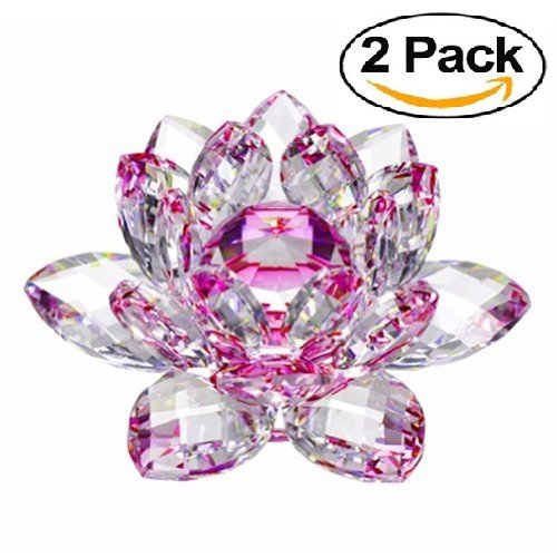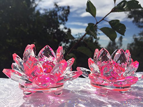 3.5”Inch Set of 2 Pcs of Sparkle Crystal Lotus Flower By Sunrise Crystal (Pink)