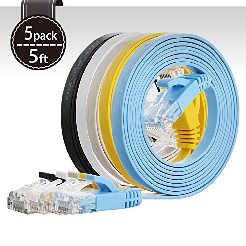 Cat6 Ethernet Cable 5ft ( 5 PACK )(At a Cat5e Price but Higher Bandwidth) Flat Internet Network Cable - Cat 6 Ethernet Patch Cable Short - Cat6 Computer Cable With Snagless RJ45 Connectors