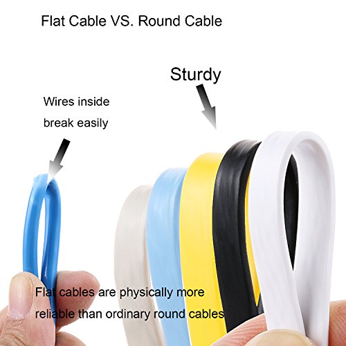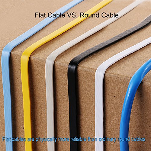 ✔Flat Cat 6 cable design helps avoid tangled cords and saves space.Flat Ethernet cable is super flexible when run under the carpet or bent in the plane of its thin cross-section such as doors, rotating arms, drawers etc