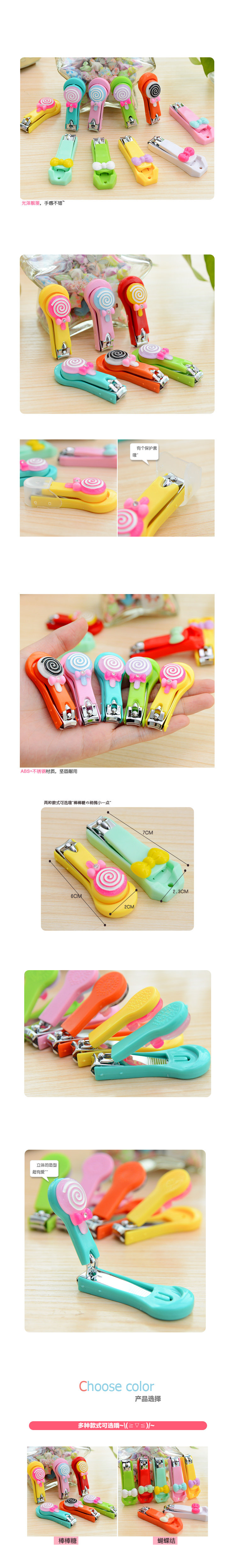 (1套3个)甜美糖果色可爱蝴蝶结指甲刀 指甲钳 指甲剪 可挂