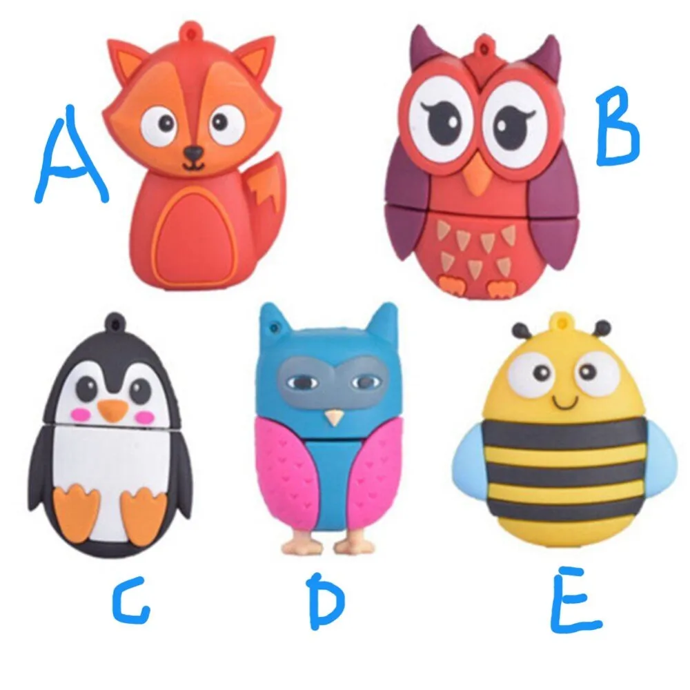 Kids Cute Animal Owl/Fox/Bee/Penguin USB 8GB 16GB 32GB 64GB Flash Drive Portable Storage Pen/Stick Gift