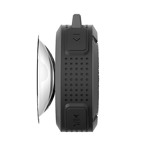 Easy access to HandfreeShock & water resistant loud speaker and built-in mic for both outdoor and indoor use. Comes with a built-in hook and a FREE camping snap hook for outdoor use with high portability. Talking / Volume up / Volume down / fast forward (skip) / Backward / Pause / Play / Power buttons.