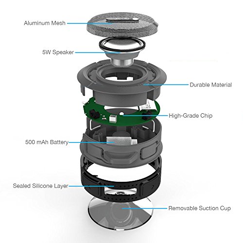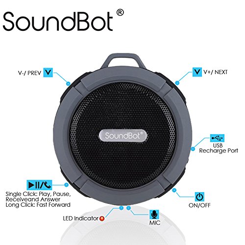 " SoundBot® SB512 HD Water & Shock Resistant Bluetooth 3.0 Wireless Shower Speaker, Handsfree Portable Speakerphone with MicroUSB Charging Port, 3W Output, Built-in Mic, 6hrs of playtime, Control Buttons and Dedicated Suction Cup for Showers, Bathroom, Pool, Boat, Car, Beach, & Outdoor Use)