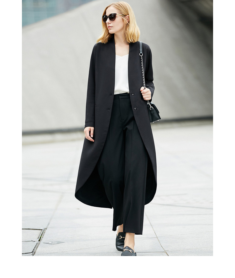 面料成分: 米白:73.9%聚酯纤维,20%粘纤,6.1%氨纶 黑色、深海蓝:73.9%聚酯纤维,20%粘纤,6.1%氨纶 里料:100%聚酯纤维