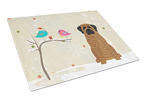 Caroline's Treasures BB2487LCB Christmas Presents Between Friends Mastiff Brindle Glass Cutting Board, Large, Multicolor