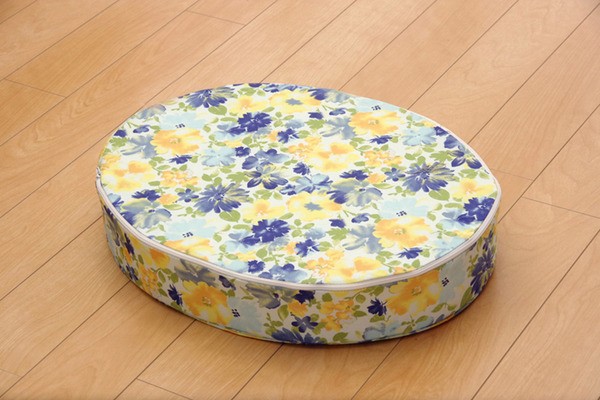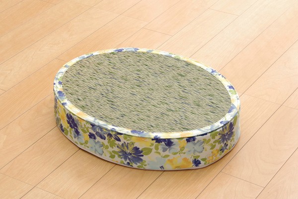 【商品名】スツール い草 花柄 『フォンターナ 楕円 スツール』 ブルー 約45×35×H15cm