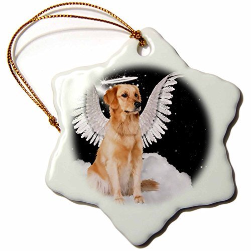 -. Title : Wild Bramble 3-Inch Porcelain Snowflake Decorative Hanging Ornament, Golden Retriever Angel Dog Sitting On A Cloud With A Cute Halo And Angel Wings