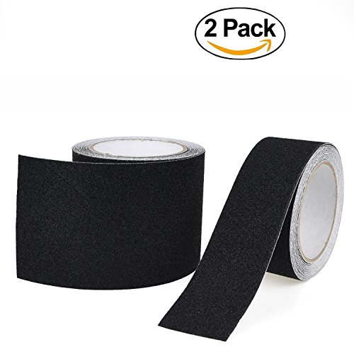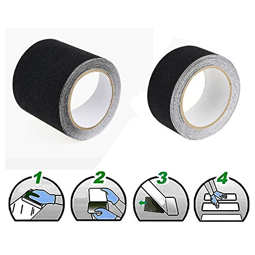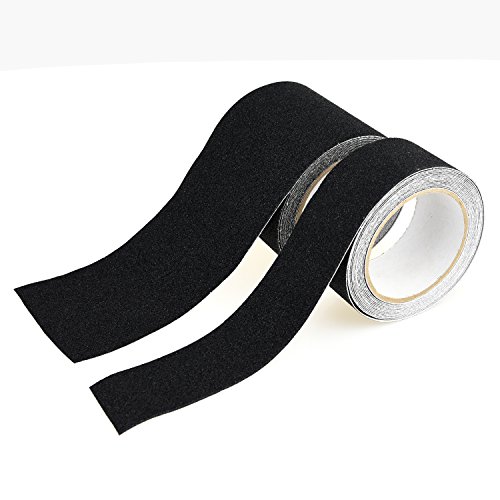NKTM Black Anti Slip Safety Grit Non Slip Tape for Stairs, Steps, Ramps, Ladders, Forklifts, Boats 2-inch by 16-foot and 4-inch by 16-foot (2 Pack)