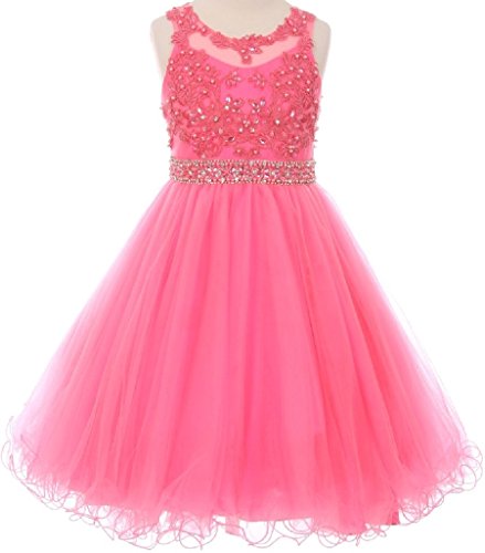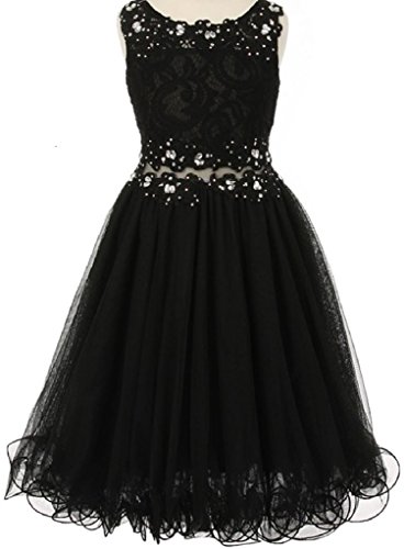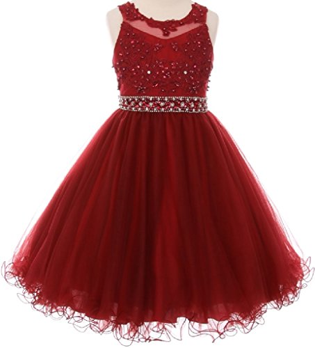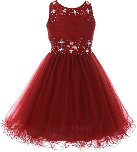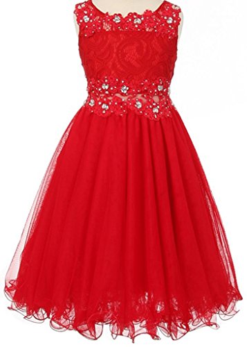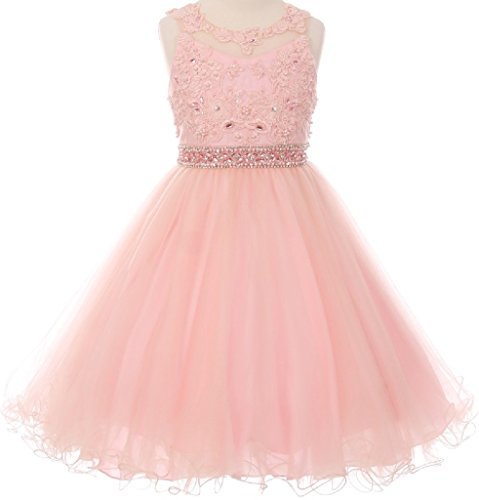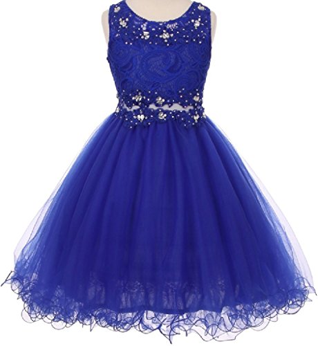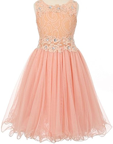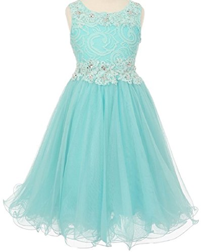 Beautiful elegant lace dress with overlay mesh skirt. Dress is accented with beautiful embroidered design and rhinestones on neck and waistline. Waistline middle section is see through.