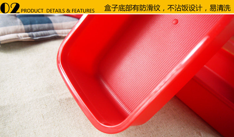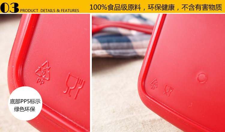 产品材质:主盒体PP,盖子PS,隔层LEDP,叉勺PP