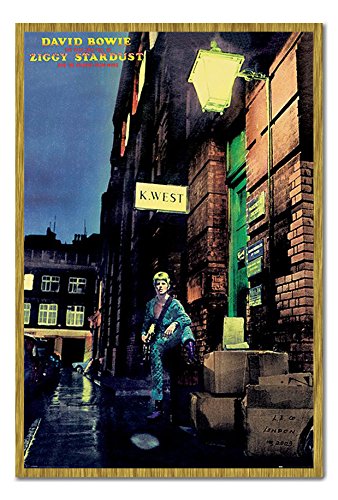 -. Title : David Bowie Ziggy Stardust Album Cover Poster Magnetic Notice Board Oak Framed - 96.5 x 66 cms (Approx 38 x 26 inches)