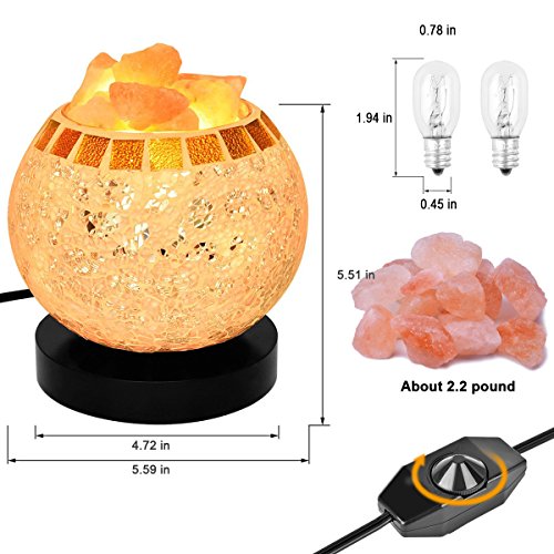 Globe glass bowl and wooden base made of this fashion salt lamp. The brightness of the salt lamp is dimmable with the help of the controller on the long cord