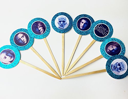 8 Aqua Ice Game of Thrones TV Show Viewing Party Cupcake Toppers for Birthday Party Favor Goody Mother of Dragons Jon Stark GOT