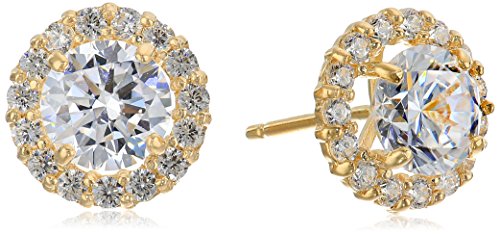 -. Feature : This stunning pair of earrings feature brilliant and meticulously cut cubic zirconia in a durable halo setting. / 14 Karat Yellow Gold: All components (setting, posts, and butterfly backs) are crafted with 14k yellow gold / A timeless staple, these classic stud earrings are perfect for gift-giving, everyday wear, or a special evening out. / Stud earrnings measure approximately 7.5 millimeters (or 0.3 inches) wide
