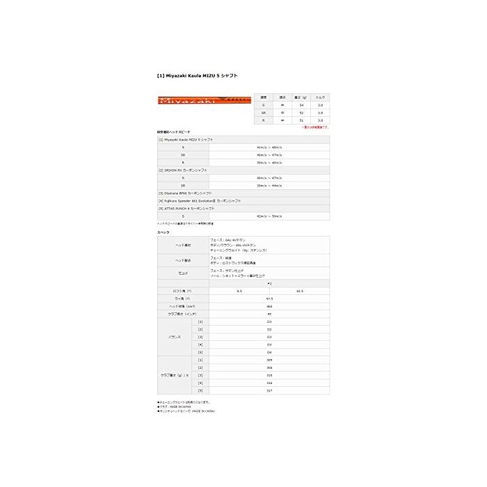샤프트:Miyazaki Kaula MIZU 5 샤프트