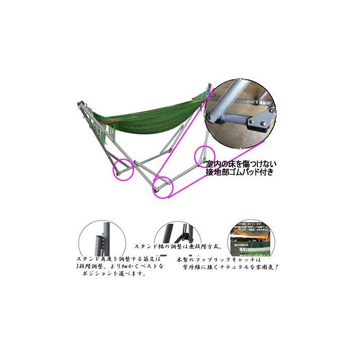 원본상품명: 余裕の大型 【L】サイズ 折りたたみ自立式スタンド付きポ?タブルハンモック (グリ?ン)