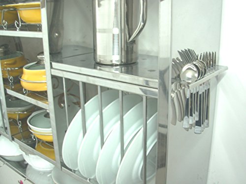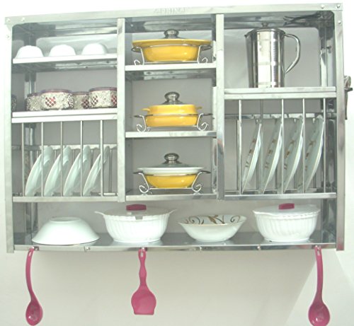 -. Binding : Kitchen -. Brand : RBJ -. Color : Steel -. Feature : 1. Rust proof finish : Smooth Surface gives the product good looks & help keeping it rust free. / 2. Long lasting quality : Made from stainless steel, long durability unlike plastic & wood. / 3. High load bearing capacity : Can bear heavy boxes including crockery & cutlery/ 4. Water Drainage : Drainage holes for water drainage, no cleaning problems. / 5. International grade : Made from international grade stainless steel - Grade AISI 430 / 6. Saves space : A complete Kitchen organizer/Wall Hanging : Even more space can be saved by hanging rack on wall. -. Label : RBJ Steel Private Limited -. Manufacturer : RBJ Steel Private Limited -. Model : 30X42 -. PackageQuantity : 1 -. ProductGroup : Home -. ProductTypeName : HOME -. Publisher : RBJ Steel Private Limited -. Studio : RBJ Steel Private Limited -. Title : Dish Drying Rack Stainless Steel (76x24x107 Cm)