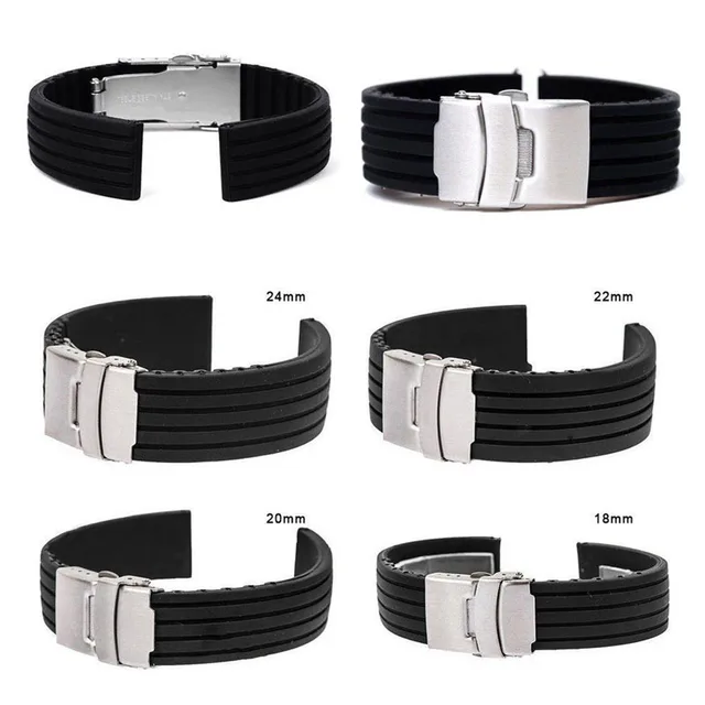 1 개 18-24 미리메터 방수 실리콘 고무 세련된 손목 시계 스트랩 밴드 배포버클