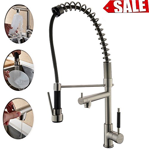 VAPSINT® High Arch Brushed Nickel Single Handle Single Hole Pre-rinse Spring Pull Out Spray Pull Down Kitchen Faucets, Multifunction Spouts Touch Sink Faucet