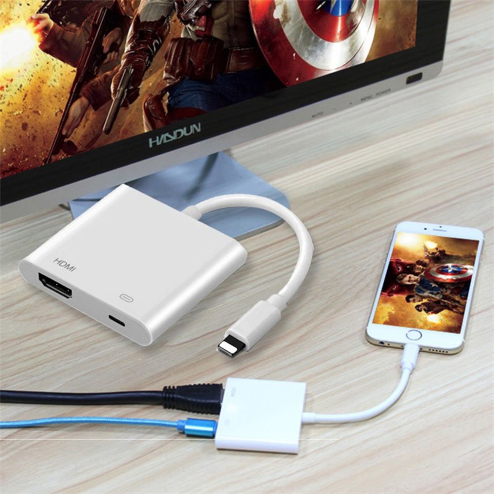 With the Lightning Digital AV Adapter, you can view everything you see on the screen of your device, such as applications, presentations, websites, slideshows, on an HDMI-equipped TV, display, projector, or other compatible display