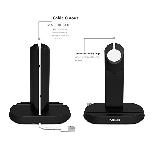 Apple Watch and iPhone Stand, iMobi4 Docking Charging Station & Holder 2 in 1 Dual Cradle for Apple Watch (38/42 mm) and iPhone 6 / 6s, 6 Plus/ 6s Plus, 5s, 5c, 5 - Black