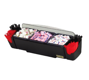 Studio : San Jamar Publisher : San Jamar Binding : Misc. Product Description The Dome condiment center makes food prep and condiment organization easy. The patented dome lid seals tight to keep foods fresh, yet rotates back for easy access. Use standard size trays to keep food chilled or deep trays for extra capacity. Snap-on caddies are available to replace handles for holding sticks, straws or spoons. High-impact plastic construction. NSF listed. 0