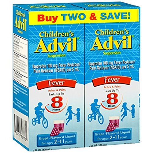 Studio : Children's Advil Publisher : Children's Advil Binding : Health and Beauty Product Description When fever is running through your house, turn to Children's Advil Suspension to reduce fever fast*. Up to 8 hours of relief with just one dose for children aged 2-11. Available in 6 great-tasting flavors: Sugar-free Dye-free Berry, Bubble Gum, Grape, Blue Raspberry, Fruit, and Dye-free White Grape * Based on reducing fever below 100degF 0