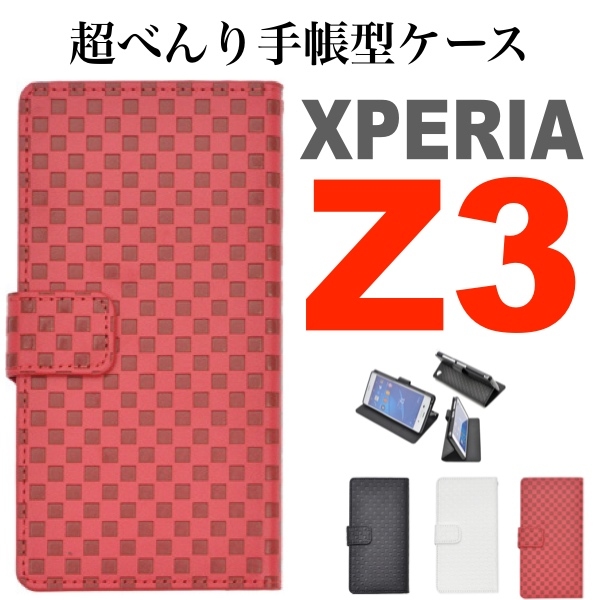 市松模様レザーデザインのXperia Z3(SOL26/SO-01G/401SO)用スタンドケースポーチ。