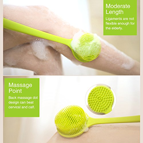 -. Feature : Premium Material- Made of top-quality silicone, 100% BPA free, suitable for exfoliating, relaxing and removing dead skin and toxins. / Soft Silicone Bristles- Offer added care and superior cleaning experience for your tender skin. / 14.8" Long Handle- Provide anti-slip and comfortable grip, easy to massage and clean your back and other hard-to-reach body areas. / Comfortable Health- Rub and soften skin over your full body, improve your skin's quality and leave it glowing and smooth. / High Performance- Effectively remove the dirt and unnecessary grease, great for thorough body cleaning and massage.