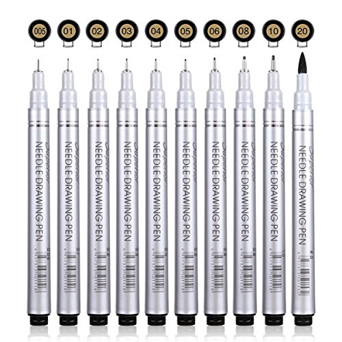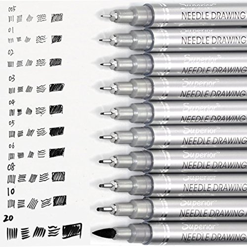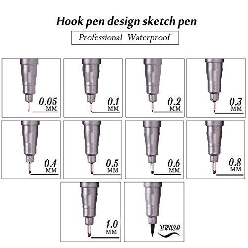 - 【SET OF 10 BLACK FINELINER MICRO-PENS】:0.2mm (005), 0.25mm (01), 0.3mm (02), 0.35mm (03), 0.4mm(04), 0.45mm (05), 0.5mm (06), 0.6mm (08), 1.0mm (10), 2.5mm (20)