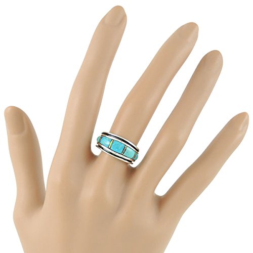 -. Title : Sterling Silver Ring with Genuine Turquoise & Lab Opal Size 6 to 11 Unisex