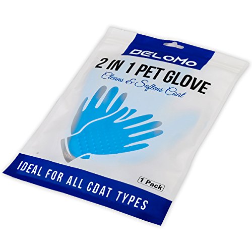 Slip on the Delomo pet grooming glove and keep your pet's coat looking clean and healthy while reducing the hair scattered about the house! Keeping your dog's or cat's coat brushed regularly is important for their overall health, as well as yours-and the 2 in 1 Double Side Pet Glove make it easier and more efficient than ever before! Brush Away the Mess This flexible, slip-on grooming gloves allow you to brush away dirt, grime, dander and loose hair from cats, dogs and horses of all shapes and sizes. More importantly, it helps stimulate the healthy oils on their skin which can improve the softness and radiance of their coat. Double-side Design Glove Efficiently Pet Fur Hair Dust Clean, keeping your furniture fur-free and lint-free has never been easier, but the double-sided removal Glove's velour side could tackle the impossible task of removing unwanted pet fur, lint, and hair from you clothes and fabric surfaces. A Healthier Home Gentle on the skin thanks to velour side, our groomer's glove not only helps reduce the amount of hair left behind on furniture, carpets and fabrics; it can help reduce allergens in the air for cleaner, healthier breathing. Product Details: - Features a 2-in-1 design, Double side use