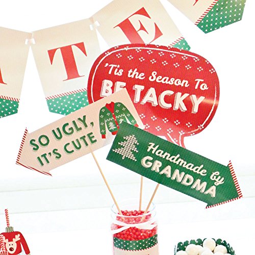 UGLY SWEATER DECORATIONS: Many fun ways to use these cute photo booth props! Use as intended and take party photos to share; Add them to vases and floral arrangements as a fun Ugly Sweater centerpiece; Accent your Ugly Sweater candy buffet by displaying them in apothecary candy jars; Adhere as direction arrows to walls and guide your guests to the Christmas party!