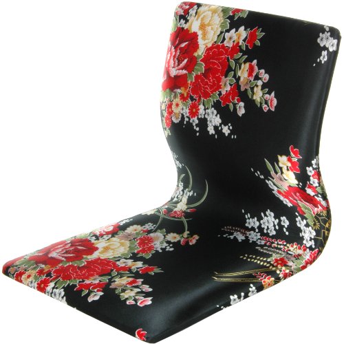 Oriental Furniture Tatami Meditation Backrest Chair - Black & Red Hibiscus