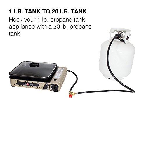 CONVERT YOUR 1 LB PROPANE TANK TO 20 LB - Hose with adapter fitting let you hook your 1lb propane required propane appliance with 20 lb tank or lager by connecting this adaptor, Allows connection to more fuel