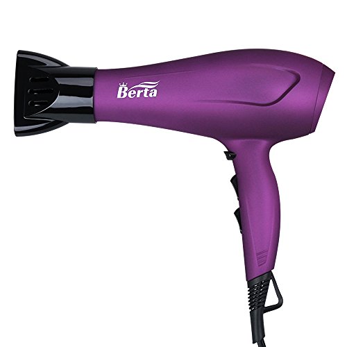 -. Title : BERTA 1875 Watts Negative Ionic Blow Dryer Soft Touch Finish Tourmaline Ceramic Hair Dryer, Purple