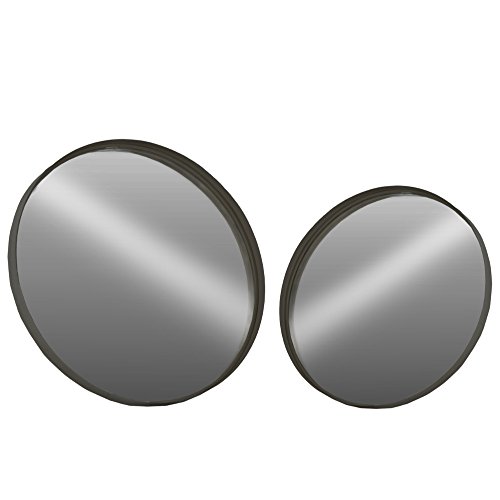 Benzara Fine Crafted Metal Round Wall Mirror, Set of 2-Large-Black Hangings