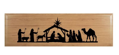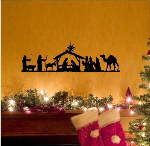 Nativity Scene Vinyl Lettering Wall Decal Sticker (6"H x 18.5"L, Black)