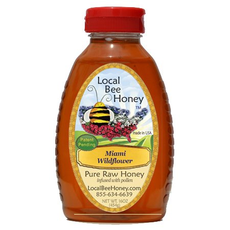 Local Bee Honey, Miami Wildflower Honey 16oz (infused with pollen for allergy relief)