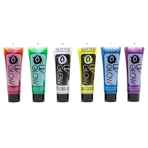 -. Binding : Misc. -. Brand : UV Glow -. EAN : 5060426871061 -. Feature : Set of 6x 0.34oz Glitter Gels / 6 Vibrant Colours / Perfect for Festivals, Parties, Christmas and Thanksgiving! / Dries quickly on the skin and last all night / Washes off easily with soap and water -. Label : UV Glow -. Manufacturer : UV Glow -. MPN : U1061 -. PackageQuantity : 1 -. PartNumber : U1061 -. ProductGroup : Beauty -. ProductTypeName : BEAUTY -. Publisher : UV Glow -. Studio : UV Glow -. Title : Face & Body Glitter Gel 0.34oz - Set of 6 tubes - UV Glow Branded Glitter Face Paint - Perfect for festivals and christmas parties
