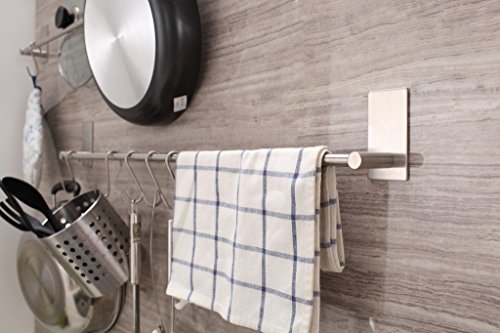 - 3. Super Easy to Install: just clean the wall or glass, peel off the backing and press. No need to drill, no damage to the wall, no marks left. Just place the towel bar in your desired location.