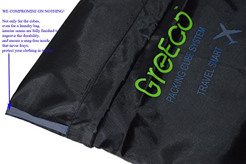 You can be certain we put a lot of thinking into GreEco Packing Cube System before launch it. Like lots of market research, quality materials comparision, reinforced designed,testing in lab etc. To make a perfect travel for you, additonal laundry bag and shoe bag included. So you can feel our good faith from what you buy!