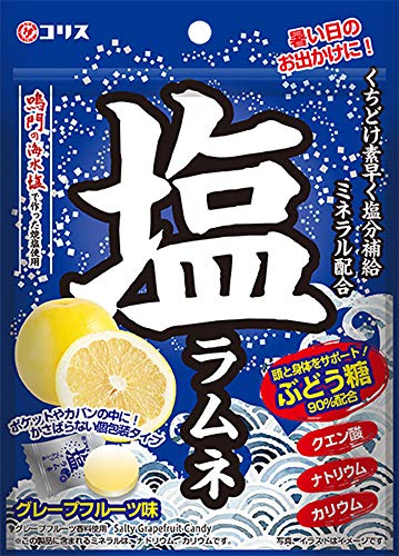 原材料:ぶどう糖、食塩、パラチニット、酵母エキス、デキストリン/乳化剤、クエン酸ナトリウム、酸味料、塩化カリウム、糊料(プルラン)、香料、フラボノイド色素、甘味料(スクラロース)、リン酸カルシウム