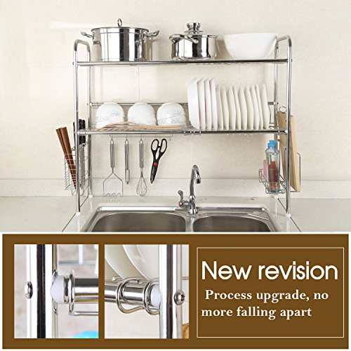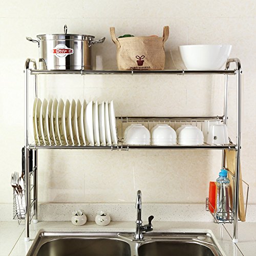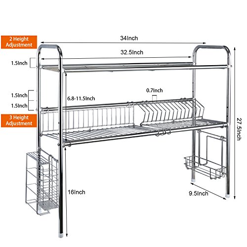 - 304 Stainless steel material, polishing and welding process, prevent from rusting.The dish rack with height adjustment, sturdy, durable and more effective to storage.Organizing your kitchen: plates, pan, mug, dinnerware.