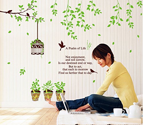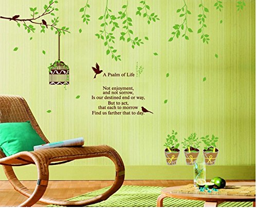 -. Brand : Apexshell -. Feature : Material: Vinyl / Easy to apply - just peel and stick! / Applies to any smooth surface / Removable and repositionable with no sticky residue -. Label : Apexshell -. Manufacturer : Apexshell -. MPN : QT-AY-00025-p -. PartNumber : QT-AY-00025-p -. ProductGroup : Home Improvement -. ProductTypeName : BUILDING_MATERIAL -. Publisher : Apexshell -. Studio : Apexshell -. Title : Apexshell (TM) A Psalm of life Quote Green Tree Leaves with Birds House and Flowerpot Removable High quality DIY Decorate Wall Decal Sticker Decor for Kids, Home, Nursery Room, for Children's Bedroom