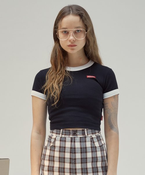 배색감이  돋보이는 크롭 링거티입니다.