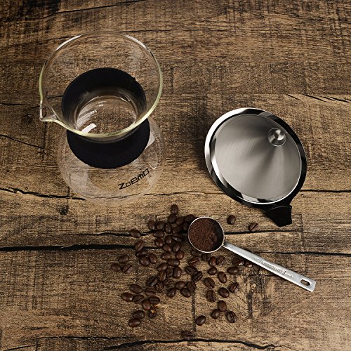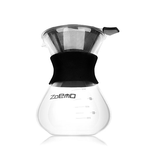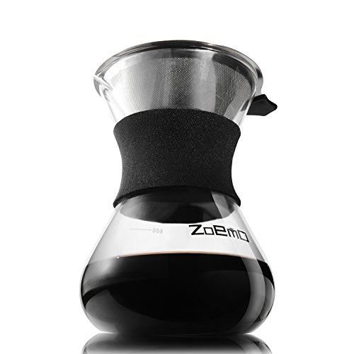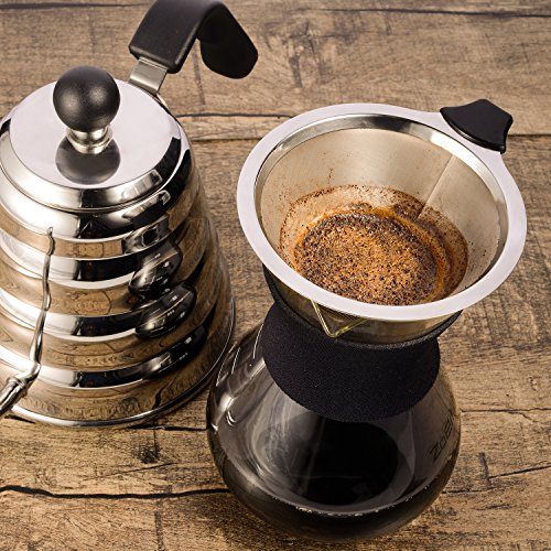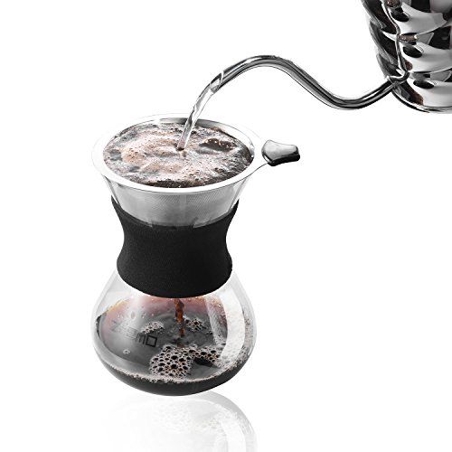 Pour Over Slow Hand Drip Coffee Maker - Anti-Scratch Borosilicate Glass Carafe with Silicone Grip - Stainless Steel Permanent Mesh Coffee Filter, 22.5oz/660ml