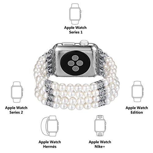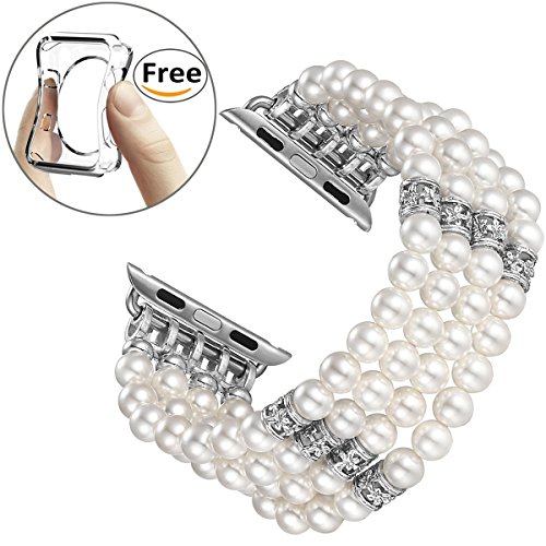 Fastgo For Apple Watch Band 38mm, Fashion Handmade Elastic Stretch Faux Pearl Bracelet Replacement Women (White - 38mm)